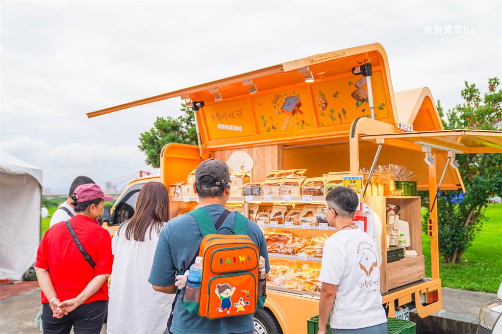 除了音樂饗宴、手作課程,還有涵蓋美食、在地小農、手作藝術的市集,我們吃了超可愛的貓咪雞蛋糕、嗑了章魚燒,還買了麵包,吃飽喝足等待夜間版新北河濱蝶戀季